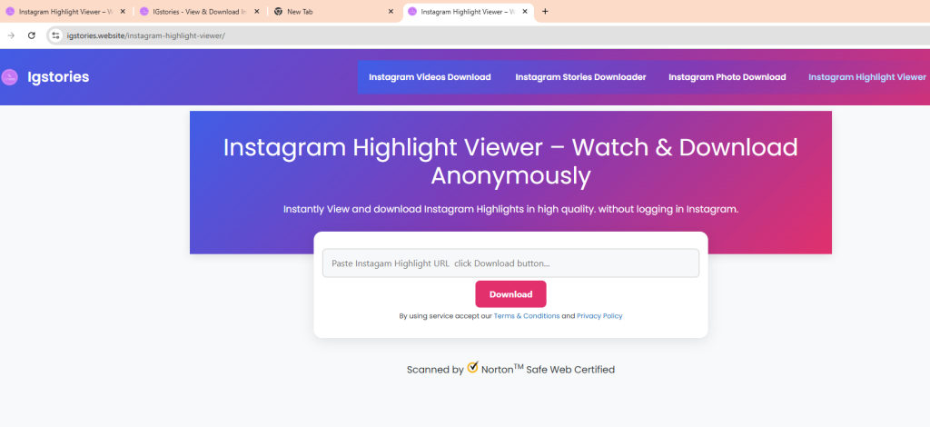 This tool lets you view Instagram Highlights privately and securely. With just a link of Instagram, you can instantly access all public highlights from any account, watch them in full quality, and even download them for offline viewing. It’s fast, free, and works on any device—making it the smart choice for anyone who values privacy and convenience in 2025.Yes—if you choose a reputable tool. Make sure: